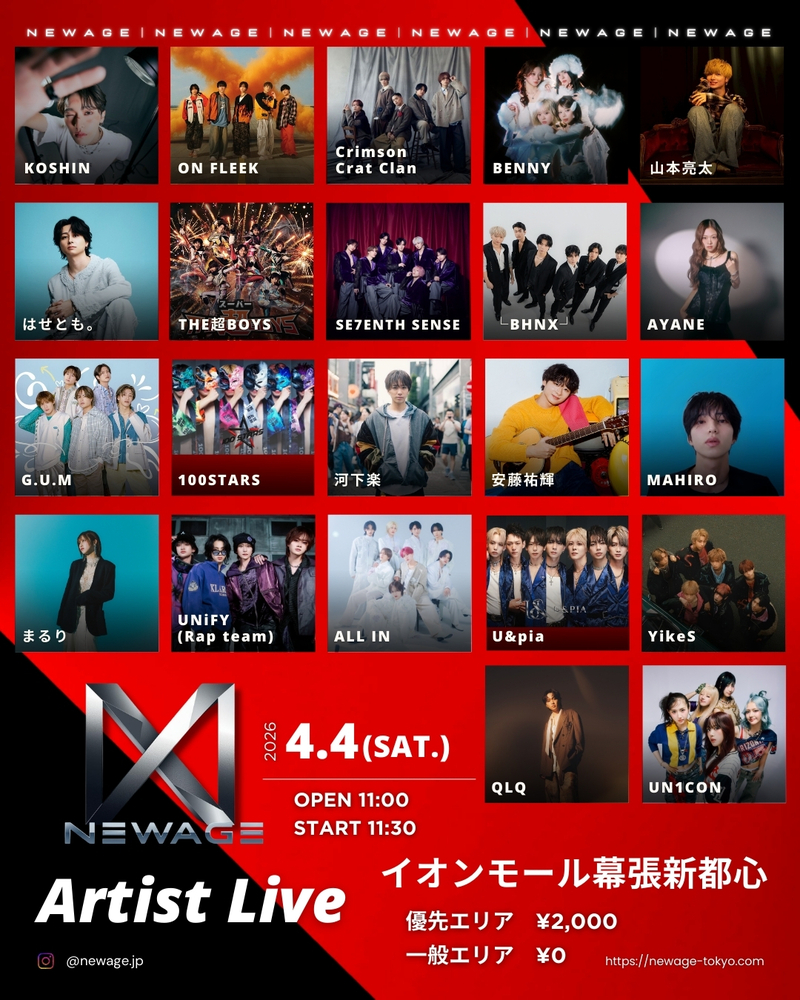 2026年4月4日(土) 『NEWAGE Artist Live』@イオンモール幕張新都心 グランドスクエア1FにALL INの出演決定!!