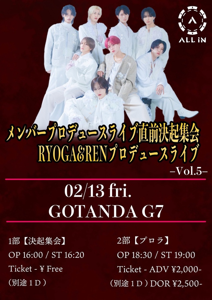 ALL IN定期公演 『メンバープロデュースライブ直前決起集会 vol.5』 『RYOGA&RENプロデュースライブ vol.5』 @五反田G7