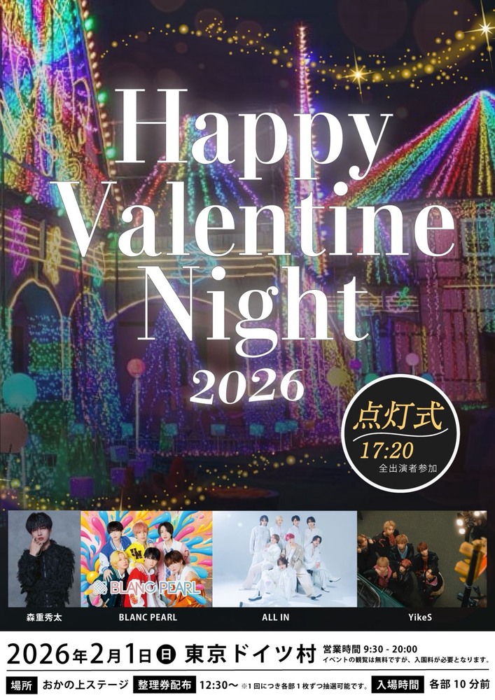2026年2月1日(日)『Happy Valentine Night 2026』@ 東京ドイツ村に ALL INの出演決定!!